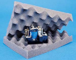 凹凸海綿,又叫波浪海綿。凹凸結(jié)構(gòu)增強(qiáng)了材料與產(chǎn)品之間的摩擦力,同一款包裝適應(yīng)多種尺寸相差不大的產(chǎn)品,通用性好,價格便宜。劣勢是產(chǎn)品不環(huán)保,對于出口產(chǎn)品一般不采用。